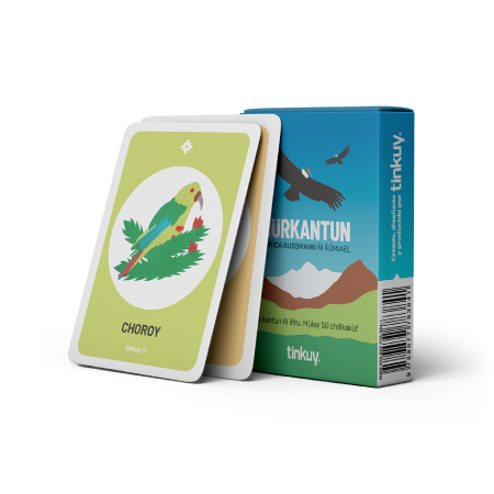 Un libro en mapuzugun con las sugerencias de juego y 50 naipes de la flora y fauna que podemos encontrar en Furilofche.