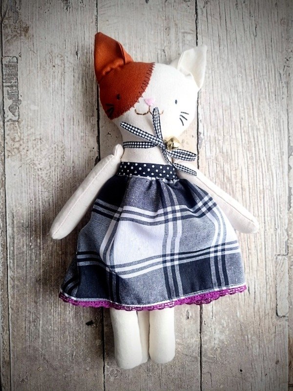 Muñeco de apego artesanal de lienzo de algodón.